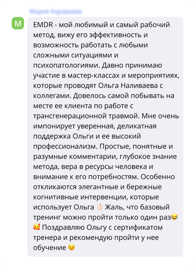 Опыт применения EMDR в работе от 2 лет с момента обучения в рамках аккредитованного тренинга 1 модуля