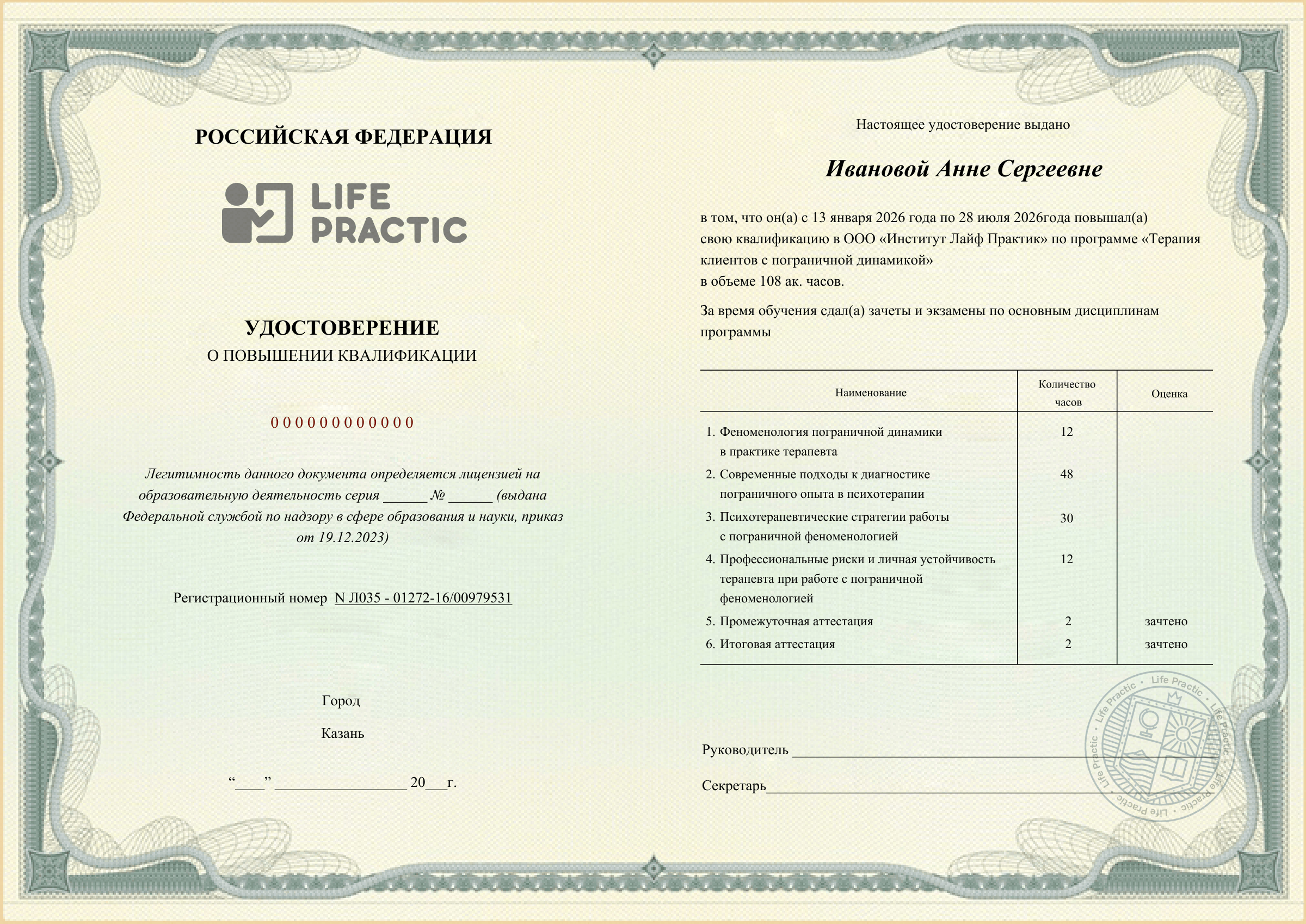 Все ученики получают сертификат участника от Life Practic с указанием часов и подписью автора.
